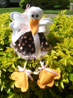 A Cegonha pequena foi feita para presentear a amiga que fosse contemplada nas brincadeiras que se fazem nos chás para ver qual a próxima a engravidar. Então nada mais juntos que já levar a cegonha!!!
